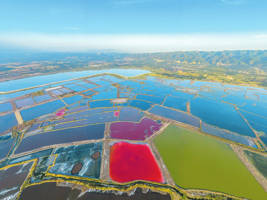 仲夏時節(jié),隨著氣溫升高,運城鹽湖濕地呈現(xiàn)出色彩斑斕的美麗景觀。近年來,運城市大力實施“退鹽還湖”“還湖于民”生態(tài)修復工程,把鹽湖從礦區(qū)、工業(yè)區(qū)變?yōu)樯鷳B(tài)保護區(qū)、旅游區(qū)。(閆鑫攝)