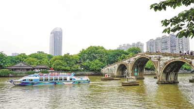 兩艘船2022年3月底進廠,改造前后經(jīng)歷兩個多月,杭州水上發(fā)展集團有限公司相關負責人說:“為了更好地發(fā)揮運河游船的文化特色優(yōu)勢,我們緊扣‘中國新時代、杭州新亞運’的目標定位,精心改造升級了兩艘水上巴士?!彼习褪窟€是亞運特許零售點,游客在船上可購買到心儀的亞運紀念品,船舶運營過程中還會途經(jīng)亞運會吉祥物“宸宸”的原型——拱宸橋,兩岸的市民游客還可與亞運特色船、拱宸橋來個合影。