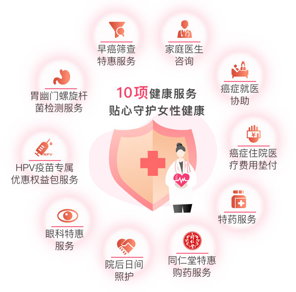 此外,“愛她?!边€為參保人提供HPV疫苗預(yù)約服務(wù)、胃幽門螺旋桿菌檢測服務(wù)、早癌篩查特惠服務(wù)、家庭醫(yī)生咨詢、癌癥就醫(yī)協(xié)助、癌癥住院醫(yī)療費用墊付、特藥服務(wù)、同仁堂購藥特惠服務(wù)、院后日間照護(hù)等10項健康服務(wù),為女性和家人的健康全面保駕護(hù)航。