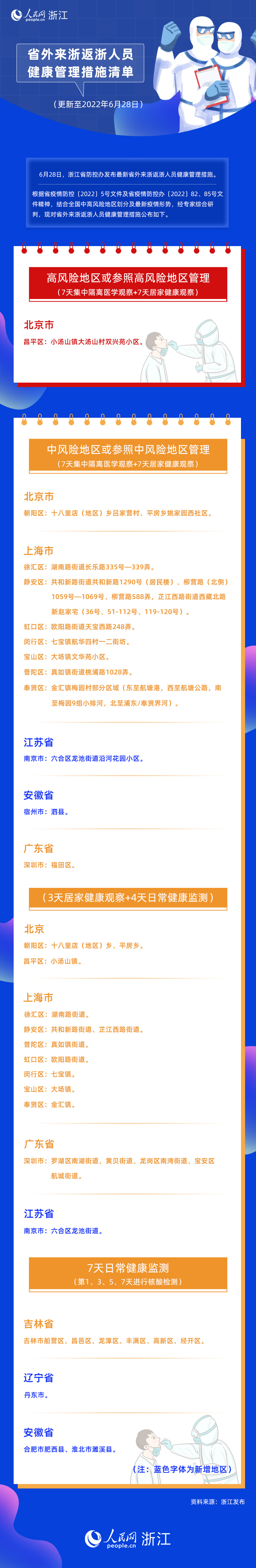 省外來浙返浙人員健康管理措施(6月27日更新)