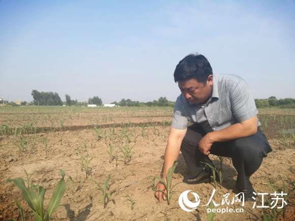 徐建平查看退林還耕后玉米生長(zhǎng)情況。人民網(wǎng) 張玉峰攝