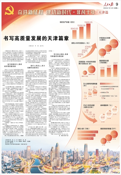十載春華秋實,鐫刻非凡印記。黨的十八大以來,天津堅持以習近平新時代中國特色社會主義思想為指導,深入貫徹落實習近平總書記對天津工作“三個著力”重要要求和一系列重要指示批示精神,堅定不移貫徹新發(fā)展理念,緊緊圍繞國家賦予的功能定位,踔厲奮發(fā)、篤行不怠,不斷推進高質(zhì)量發(fā)展,向著全面建設(shè)社會主義現(xiàn)代化大都市的目標昂首奮進。