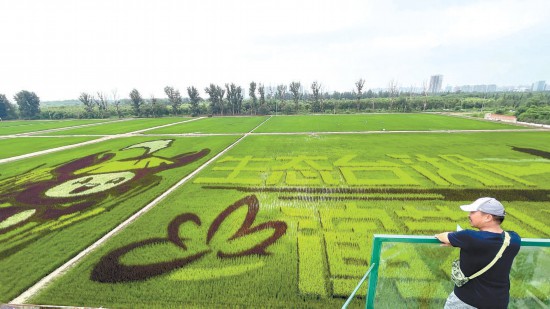 本報(bào)訊(記者 孫云柯)用大地田園作畫紙,用五彩水稻作畫筆。近日,通州區(qū)臺(tái)湖鎮(zhèn)稻小蟹藝術(shù)農(nóng)場(chǎng)內(nèi)的五彩稻田進(jìn)入最佳觀賞期,一幅水田阡陌、青翠宜人的生態(tài)田園畫卷徐徐展開。