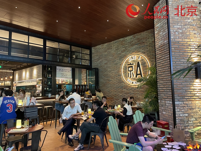 除了火鍋店,一家名為“京A Taproom”的美式精釀啤酒餐吧也熱鬧十足。美式工業(yè)風(fēng)的裝潢極具格調(diào),炸雞配啤酒的組合也頗有人氣?!斑@里的氛圍我很喜歡,小吃和啤酒也很對我的胃口,來這里能夠忘掉那些煩惱和壓力?!崩钆吭诠ぷ髁艘惶熘?,邀約了朋友一起來這家餐吧放松心情。