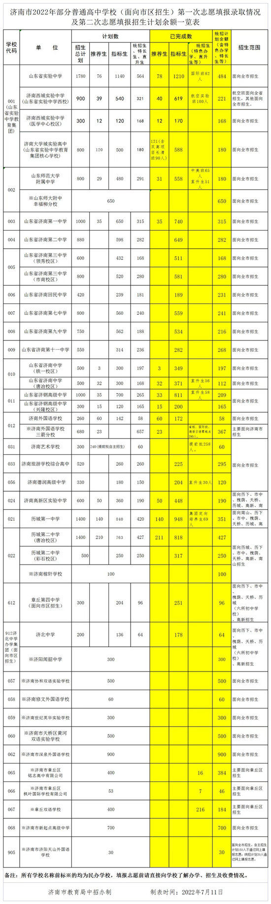 人民網(wǎng)濟南7月12日電(公雪)12日下午,濟南市教育局中招辦召開2022年高中階段學(xué)校招錄工作第二次新聞發(fā)布會。會上公布了第一批次志愿填報錄取情況、第二批次志愿填報說明、各招生學(xué)校剩余招生計劃。