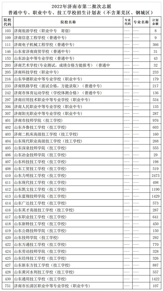 濟南市高中階段學(xué)校招錄第二批次志愿填報說明、各校剩余招生計劃(不含萊蕪區(qū)、鋼城區(qū))