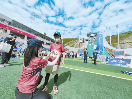 “媽媽,我找到了!”6歲女童小安妮跟著媽媽一路奔跑到達(dá)位于“冰玉環(huán)”上的指定地點,完成打卡,高興地與媽媽拍手。昨天舉辦的冬奧場館定向賽吸引了幾百名戶外運(yùn)動愛好者來到張家口崇禮,他們在國家跳臺滑雪中心、張家口奧林匹克頒獎廣場、張家口冬奧村、太子城考古遺址公園等多個冬奧會場館間穿行,感受這里的冬奧記憶。