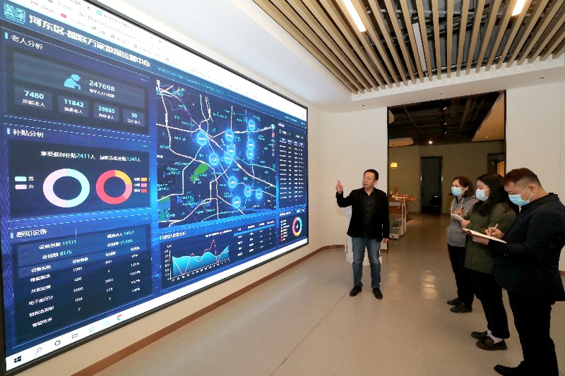在“智聯(lián)萬家”平臺大屏幕上,有河東區(qū)老人數(shù)量情況、低保補貼和居家養(yǎng)老補貼人數(shù)、當前物聯(lián)設(shè)備發(fā)放總數(shù)及當前在線數(shù)量和位置,以及當前出現(xiàn)的異常提醒等。