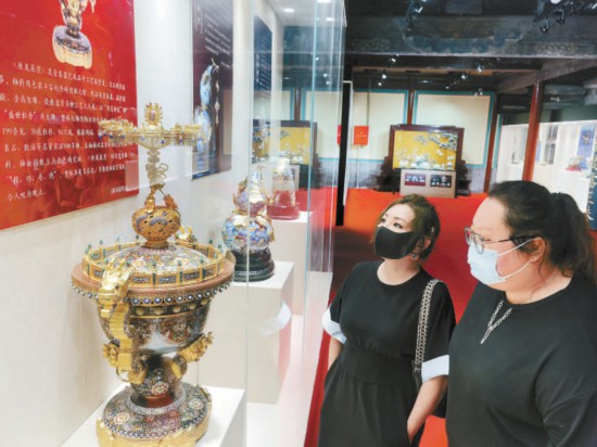 昨天,“匠心筑夢共創(chuàng)未來——燕京八絕非遺創(chuàng)新精品展暨中國工藝美術(shù)大師張同祿景泰藍(lán)傳承作品特展”在千年古剎承恩寺北京燕京八絕博物館開幕。觀眾品鑒了《座龍花薰》《富貴恒通》《花漫春和》《智趣》等二十余件題材豐富廣泛、釉質(zhì)細(xì)膩華美、造型多姿多彩、立意莊重深遠(yuǎn)的景泰藍(lán)工藝精品。 本報(bào)記者 吳鏑攝