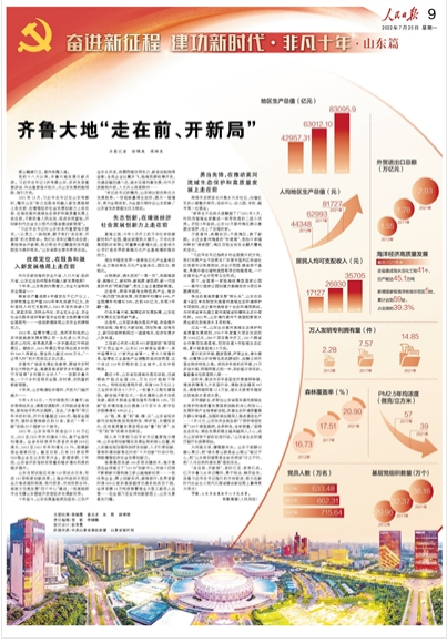 十年奮斗,山東發(fā)展基礎(chǔ)更加堅(jiān)實(shí):三次產(chǎn)業(yè)齊頭并進(jìn),供需兩端協(xié)同發(fā)力,新老動(dòng)能相得益彰,各類企業(yè)比翼齊飛,陸海資源統(tǒng)籌開(kāi)發(fā),交通運(yùn)輸四通八達(dá),城鄉(xiāng)區(qū)域均衡發(fā)展,對(duì)外開(kāi)放提檔升級(jí),人文沃土深度耕作……