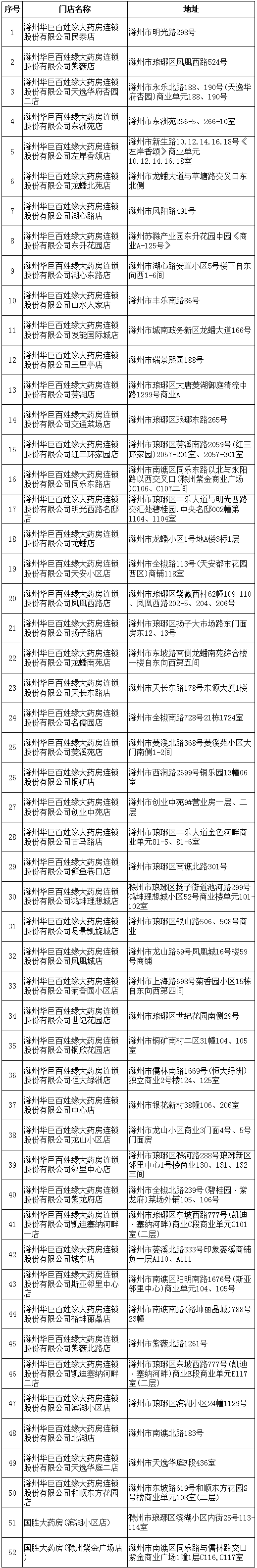 滁城52家藥店清單(滑動(dòng)閱讀更多↓)