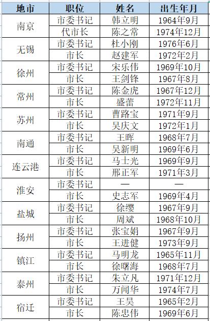 人民網(wǎng)統(tǒng)計(jì)發(fā)現(xiàn),江蘇設(shè)區(qū)市黨政主官中“70后”已達(dá)10位,占比近半。其中,蘇州、無(wú)錫、泰州三市的黨政主官均為“70后”。江蘇各市黨政主官里,目前最年輕的是出生于1976年的無(wú)錫市委書(shū)記杜小剛。