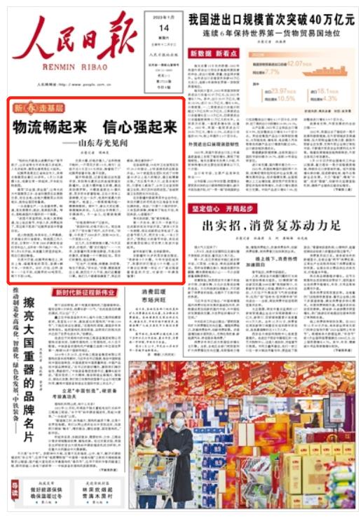 新春走基層 | 人民日?qǐng)?bào)頭版頭條聚焦山東壽光:物流暢起來(lái),信心強(qiáng)起來(lái)!