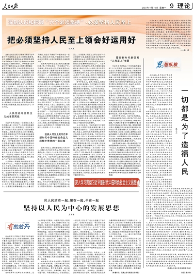 以縣處級以上領導干部為重點在全黨深入開展學習貫徹習近平新時代中國特色社會主義思想主題教育,是貫徹落實黨的二十大精神的重大舉措,對于統(tǒng)一全黨思想、解決黨內(nèi)存在的突出問題、始終保持黨同人民群眾血肉聯(lián)系、推動黨和國家事業(yè)發(fā)展,具有重要意義。學深悟透習近平新時代中國特色社會主義思想,必須把握這一重要思想的世界觀、方法論和貫穿其中的立場觀點方法。黨的二十大報告提出了繼續(xù)推進理論創(chuàng)新的科學方法,即必須堅持人民至上、必須堅持自信自立、必須堅持守正創(chuàng)新、必須堅持問題導向、必須堅持系統(tǒng)觀念、必須堅持胸懷天下。這“六個必須堅持”,是習近平新時代中國特色社會主義思想的立場觀點方法的重要體現(xiàn)。從今天起,本報推出深刻認識和把握“六個必須堅持”系列理論版。第一期圍繞如何深入學習領會“必須堅持人民至上”進行闡述。