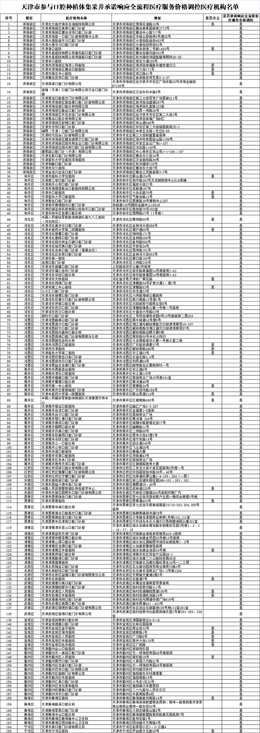 附件:天津市參與口腔種植體集采并承諾響應(yīng)全流程醫(yī)療服務(wù)價(jià)格調(diào)控醫(yī)療機(jī)構(gòu)名單