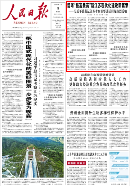 人民日?qǐng)?bào)丨譜寫“強(qiáng)富美高”新江蘇現(xiàn)代化建設(shè)新篇章——習(xí)近平總書(shū)記江蘇考察重要講話引發(fā)熱烈反響