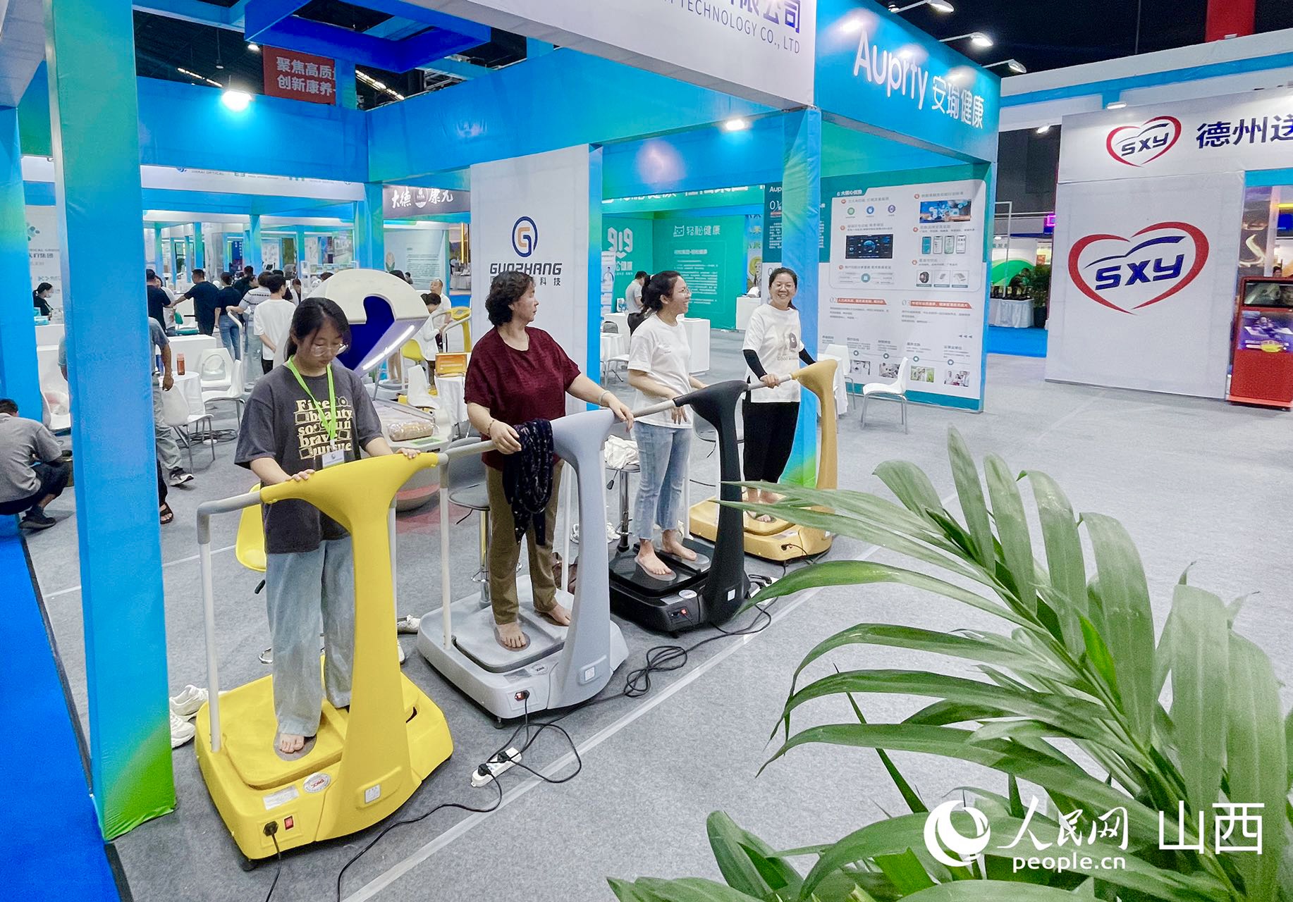 游客體驗康養(yǎng)科技儀器。人民網(wǎng)記者 王帆攝