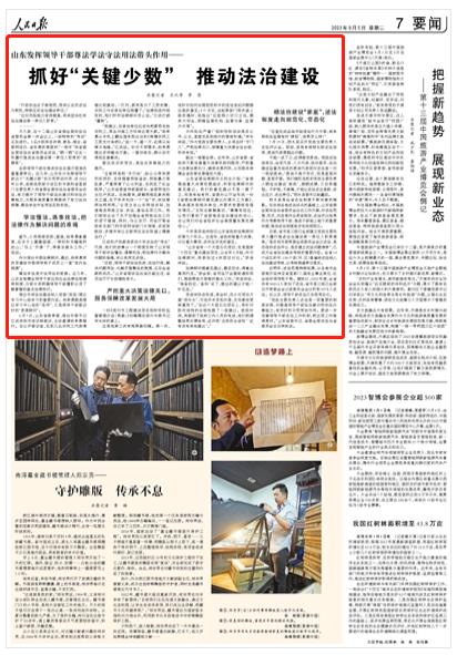 各級領導干部在推進依法治國方面肩負著重要責任。近幾年,山東充分發(fā)揮領導干部這個“關鍵少數(shù)”的示范帶動作用,自2022年以來,連續(xù)選取部分設區(qū)的市委和省直部門主要負責人向省委全面依法治省委員會述法,有力提升了領導干部法治意識和依法辦事能力,為服務高質(zhì)量發(fā)展提供了有力法治保障,尊法學法守法用法見到實效。