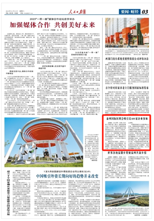人民日報(bào)海外版:泰州國際醫(yī)博會(huì)吸引近600家企業(yè)參加