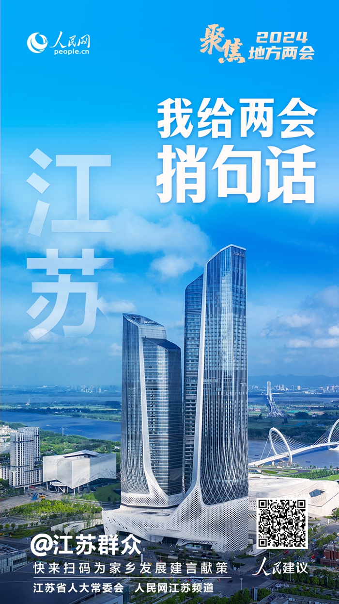 2024年江蘇省兩會即將召開。為廣泛匯集社會各界關于經濟發(fā)展、民生保障、教育人才、科技創(chuàng)新、農業(yè)農村現(xiàn)代化等方面的好建議,即日起,人民網聯(lián)合江蘇省人大常委會推出“我給江蘇兩會捎句話”大型建言征集活動,廣大網友可通過人民網“領導留言板”小程序、“人民網+”客戶端等渠道,為家鄉(xiāng)發(fā)展積極建言獻策。