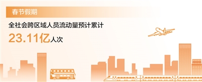 春節(jié)假期全社會(huì)跨區(qū)域人員流動(dòng)量預(yù)計(jì)累計(jì)23.11億人次