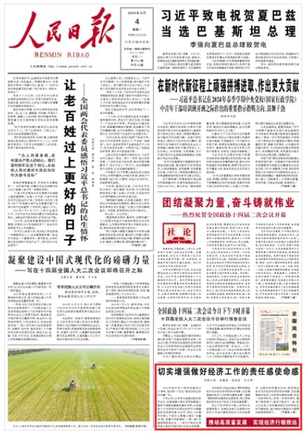 《人民日?qǐng)?bào)》2024年3月4日01版 版面截圖