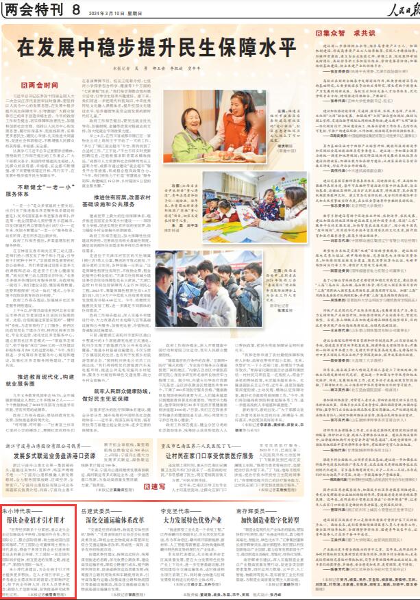 人民日報丨朱小坤代表:幫扶企業(yè)招才引才用才
