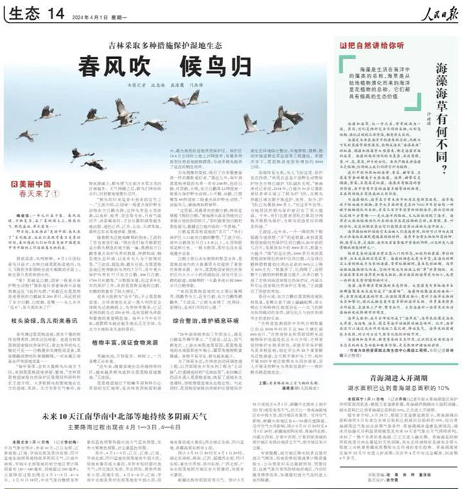 人民日報關(guān)注吉林濕地生態(tài):春風(fēng)吹 候鳥歸