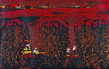 晁楣,1931年出生于山東省菏澤市,1958年跟隨十萬建設(shè)大軍來到北大荒。由于長期從事美術(shù)宣傳工作,到達(dá)墾區(qū)后,他開始在《北大荒畫報》和《北大荒文藝》兩刊編輯部工作,并利用閑暇時光進(jìn)行版畫創(chuàng)作。他的《麥?!贰兜谝坏滥_印》等版畫作品在1960年于北京舉辦的“北大荒美術(shù)作品展覽會”上受到廣泛關(guān)注,“北大荒版畫”這一概念逐漸為人們所熟知,晁楣成為該版畫流派的創(chuàng)作先驅(qū)之一。