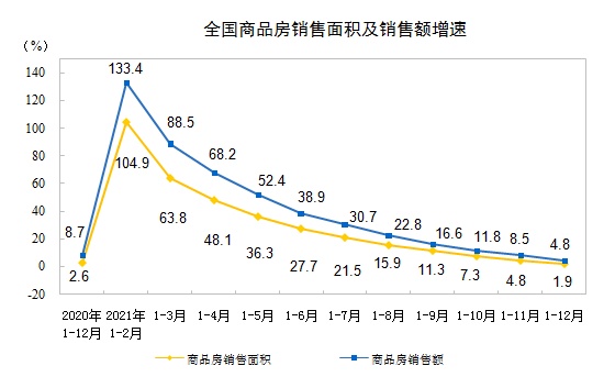 2021年商品房銷售面積同比增長1.9%