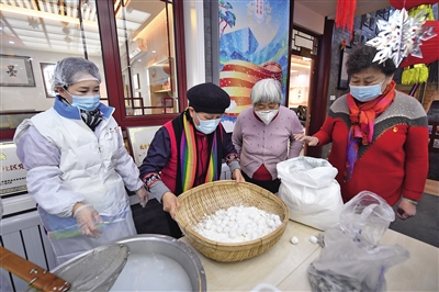 為解決市民扎堆排隊,便宜坊集團今年鋪設了約100個錦芳元宵銷售網點,并首次進駐物美超市。京味兒十足的護國寺小吃總店繼續(xù)堅持“現(xiàn)搖現(xiàn)售”,不但推出了巧克力、黑芝麻等傳統(tǒng)口味元宵,還上新了流心榴蓮餡,增加電話預訂、線上購買業(yè)務。老字號又一順專門用火龍果調色,制作出巧克力餡、玫瑰紅的限量版元宵。峨嵋酒家推出了用蔬菜汁、水果汁調出的“五彩”湯圓。華天集團微信公眾號推出“猜燈謎”互動小游戲,猜出謎底可獲得不同面值會員商城優(yōu)惠券。