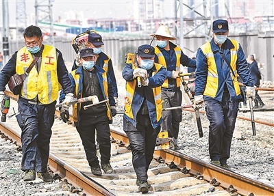 3月15日上午10點(diǎn)半,豐臺(tái)站東咽喉處,700余名建設(shè)者上線施工。這一處施工可以說是整個(gè)系統(tǒng)更換的前奏。此前在2020年8月30日,京滬線撥接進(jìn)入豐臺(tái)站過渡線并開始穿站而過。3月15日,施工人員把位于過渡線上的京滬線撥接至正式線位,該站普速車場(chǎng)的11臺(tái)20條線路就全部具備了開通條件。這也是豐臺(tái)站在正式開通運(yùn)行前的最后一次撥線施工。