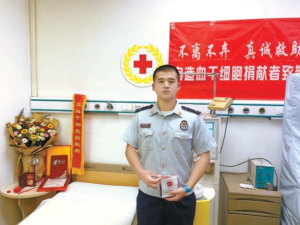 2021年5月,劉明航接到天津市紅十字會來電,他與一名2007年出生的血液病患者初配型成功,他毫不猶豫地回復(fù)愿意捐獻并前往天津,順利通過體檢和高分辨配型,并于同年6月完成捐獻。今年3月,他又接到北京市紅十字會的電話,患者病情出現(xiàn)了反復(fù),需要再進行淋巴細胞移植鞏固治療?!爱?dāng)我接到需要二次捐獻的消息時,我心里其實沒有絲毫猶豫,因為我是一名消防員,聽到救人,是義無反顧的?!闭f服了母親,劉明航再次前往采集淋巴細胞的醫(yī)院。