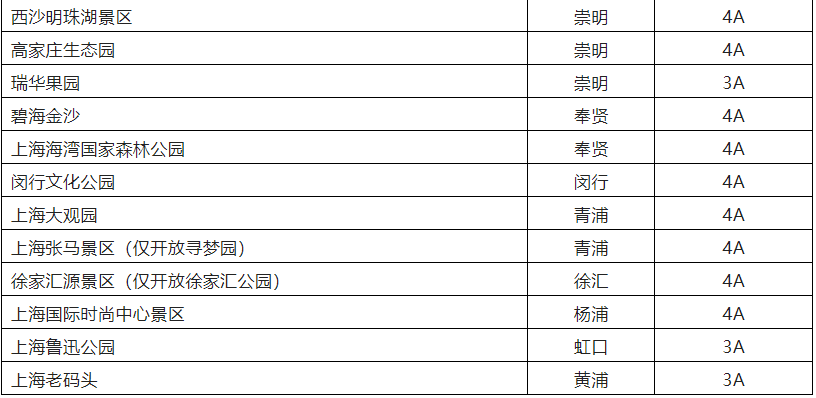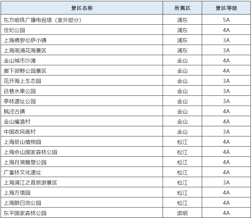 恢復開放的32家A級旅游景區(qū)(圖片來自上海市文旅局,央廣網發(fā))