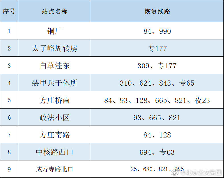 央廣網北京6月16日消息 據(jù)北京公交集團官博消息,按照防疫工作要求,自2022年6月16日首班車起,對前期途經昌平區(qū)封管控區(qū)域周邊采取甩站措施的35條線路以及前期途經豐臺區(qū)封管控區(qū)域周邊采取甩站措施的18條線路,恢復正常運營,恢復信息詳見下表。