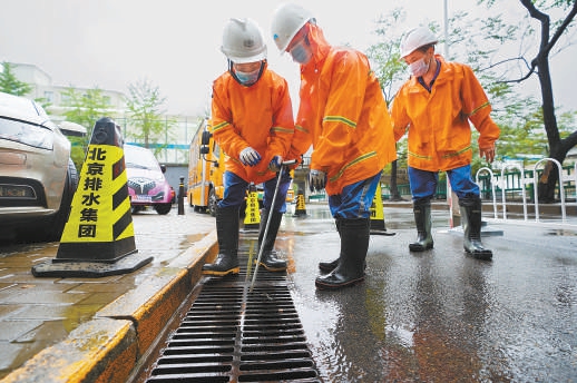 昨天9時(shí)許,在朝陽區(qū)管莊路上的一處排水口旁,兩名北京排水集團(tuán)的防汛人員先用錐桶做好警戒防護(hù),接著用鉤子鉤起雨水箅子,加速排水。在朝陽區(qū)金泰橋下凹橋區(qū),北京排水集團(tuán)壩河流域分公司的工作人員早六時(shí)就到達(dá)現(xiàn)場進(jìn)行值守。“這個(gè)點(diǎn)位地勢較低,短時(shí)雨量大的情況下容易造成積水,為避免影響交通,我們提前做好了準(zhǔn)備。”現(xiàn)場一位工作人員說。