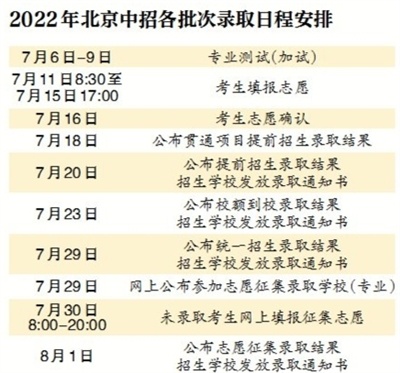 北京中招錄取7月17日啟動7月11日至15日填報(bào)志愿