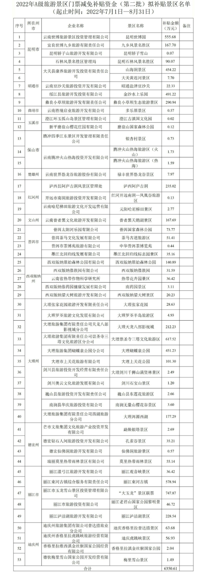 云南省公布2022年A級(jí)旅游景區(qū)門(mén)票(第二批)擬補(bǔ)貼景區(qū)名單