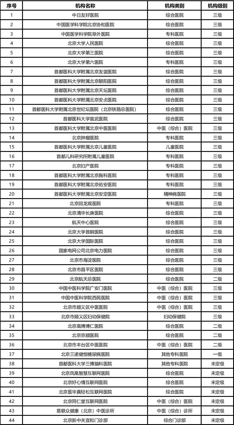 北京市公布互聯(lián)網醫(yī)院、開展互聯(lián)網診療服務醫(yī)療機構名單