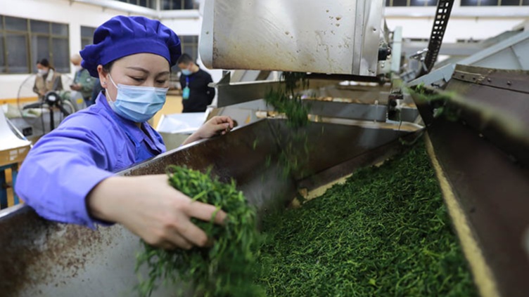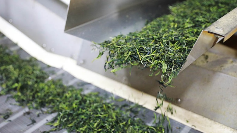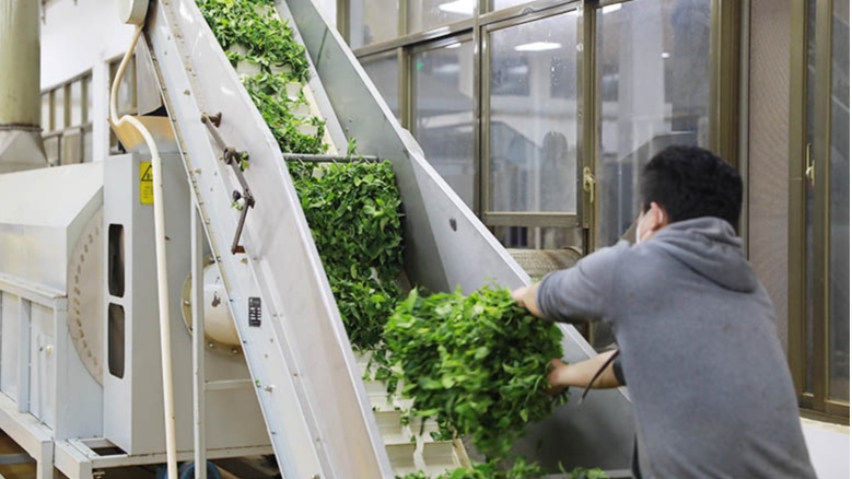 烘干后的茶葉被傳送到下一道工序(央廣網(wǎng)發(fā) 孟凡盛 攝)