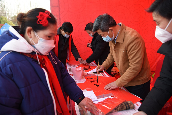 臺上歡歌載舞,臺下人頭攢動。配鑰匙、法律援助咨詢、醫(yī)生義診、眼鏡修理等服務,吸引了不少村民。書法家們現場書寫幾百幅福字,將新年的美好祝愿贈予村民。