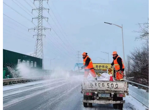 14日下午降雪后,公路部門以雪為令,第一時間啟動除雪保暢應急預案,全市公路系統(tǒng)25支360余人的應急隊伍全部出動,連夜在全市近千公里普通國省干線公路開展除雪融冰作業(yè),在結(jié)冰路段、橋梁、彎道等重點路段撒布融雪劑、防滑料,全力以赴確保公路安全暢通。