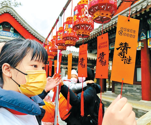 頤和園為游客準(zhǔn)備了猜燈謎活動。