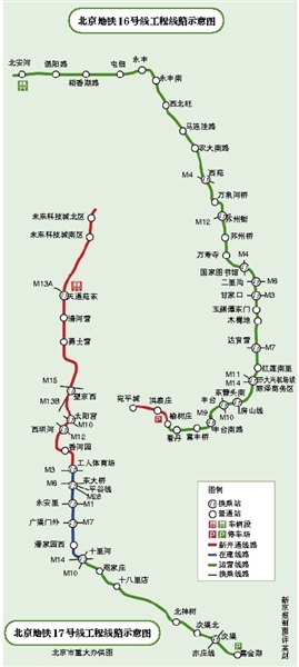 為17號(hào)線北段(未來(lái)科技城北區(qū)-工人體育場(chǎng))、16號(hào)線剩余段(榆樹(shù)莊-宛平城)