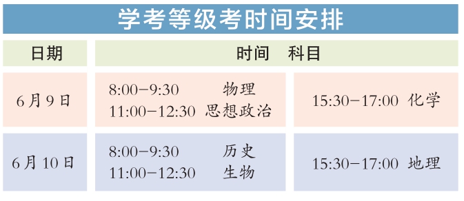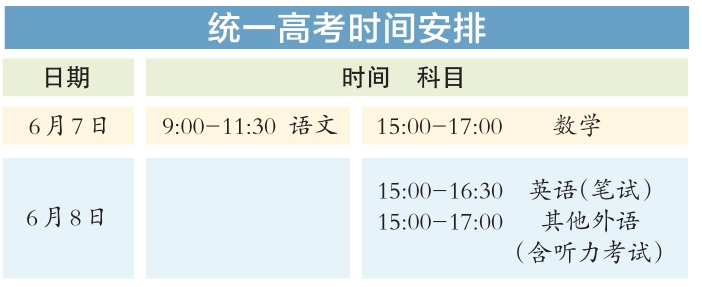 今年統(tǒng)一高考考試科目為語(yǔ)文、數(shù)學(xué)、外語(yǔ)3門(mén),滿分均為150分。其中,英語(yǔ)聽(tīng)說(shuō)考試滿分50分,其他外語(yǔ)(非英語(yǔ))聽(tīng)力考試滿分30分,兩次聽(tīng)說(shuō)(聽(tīng)力)考試的最高成績(jī)與其他部分試題成績(jī)一同組成外語(yǔ)科目成績(jī)計(jì)入高考總分。學(xué)考等級(jí)考科目為思想政治、歷史、地理、物理、化學(xué)、生物6門(mén),由考生自主選擇3門(mén)參加考試,每科目滿分100分。參加本科招生錄取的考生總成績(jī)由3門(mén)統(tǒng)一高考成績(jī)和考生選考的3門(mén)學(xué)考等級(jí)考成績(jī)構(gòu)成,總成績(jī)滿分值為750分。