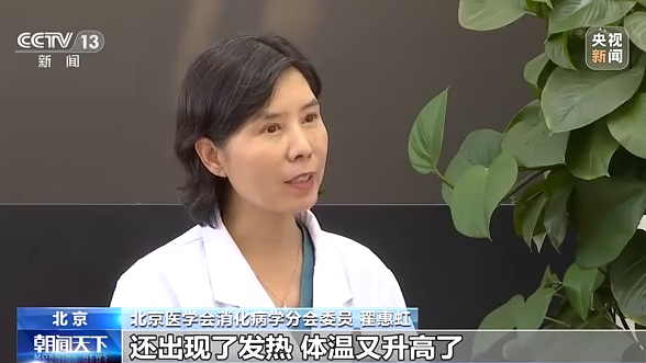 北京醫(yī)學會消化病學分會委員 翟惠虹:到了夏天的時候,如果當您吃完了食物之后,莫名其妙地就開始嘔吐,伴隨著上廁所的次數(shù)增加,就要警惕了,有可能就是腸道感染了,最好及時到醫(yī)院去。那么如果在這個上吐下瀉的過程中,還出現(xiàn)了發(fā)熱、體溫又升高了,不管這個體溫是低熱還是高熱,我建議您一定要到醫(yī)院接受相應的診斷和治療。