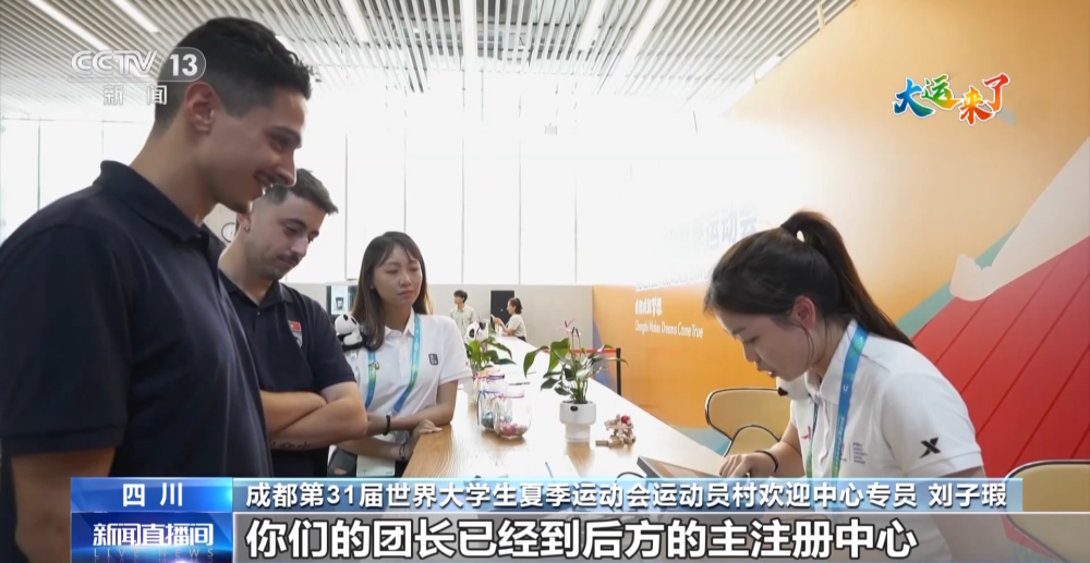 成都第31屆世界大學(xué)生夏季運(yùn)動(dòng)會(huì)運(yùn)動(dòng)員村歡迎中心專員 劉子瑕:你們的團(tuán)長已經(jīng)到后方的主注冊中心為你們辦理身份注冊卡,之后你們便會(huì)拿到身份注冊卡就可以在大運(yùn)村內(nèi)通行。