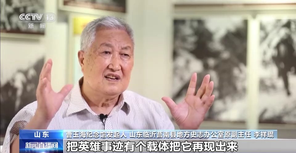 曹玉海紀念館發(fā)起人 山東臨沂莒南縣地方史志辦公室原副主任 李祥琨:建曹玉海紀念館就是把英雄事跡有個載體把它再現(xiàn)出來,教育和鼓舞、沂蒙人民不斷前進、艱苦奮斗、奪取勝利。