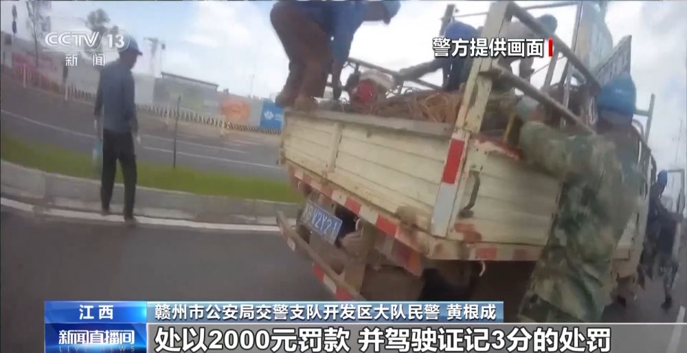 江西贛州市公安局交警支隊開發(fā)區(qū)大隊民警 黃根成:對貨車駕駛?cè)诉`反規(guī)定載客,超過十人的違法行為處以2000元罰款,駕駛證記3分的處罰。同時,我們對現(xiàn)場的施工人員進行了交通安全教育,強調(diào)他們這樣乘車的危害性,并對工地負(fù)責(zé)人下達了隱患整改通知書,并進行警示約談。