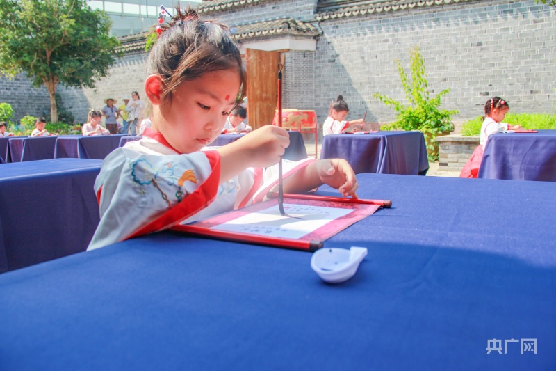 央廣網(wǎng)寧波8月22日消息(記者 張?chǎng)?通訊員 方舟 安雨晨)樹影婆娑,古韻悠揚(yáng),鼓聲清越,翰墨飄香。8月22日,在新學(xué)年來臨之際,寧波市江北區(qū)莊橋街道馬徑村文化禮堂舉行了一場(chǎng)別開生面的“開筆啟智慧 閱讀潤(rùn)人生”開筆禮?;顒?dòng)在茂昌房舉行,20多名即將上小學(xué)的小朋友身著漢服,在開筆儀式中感受中國(guó)傳統(tǒng)文化的魅力。